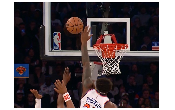 NBA常规赛洛杉矶快船客场挑战纽约尼克斯的焦点战役中,第二节中段出现戏剧性一幕——核心后卫詹姆斯·哈登(James Harden)持球突破试图以左手上篮完成得分,却被尼克斯中锋米切尔·罗宾逊(Mit